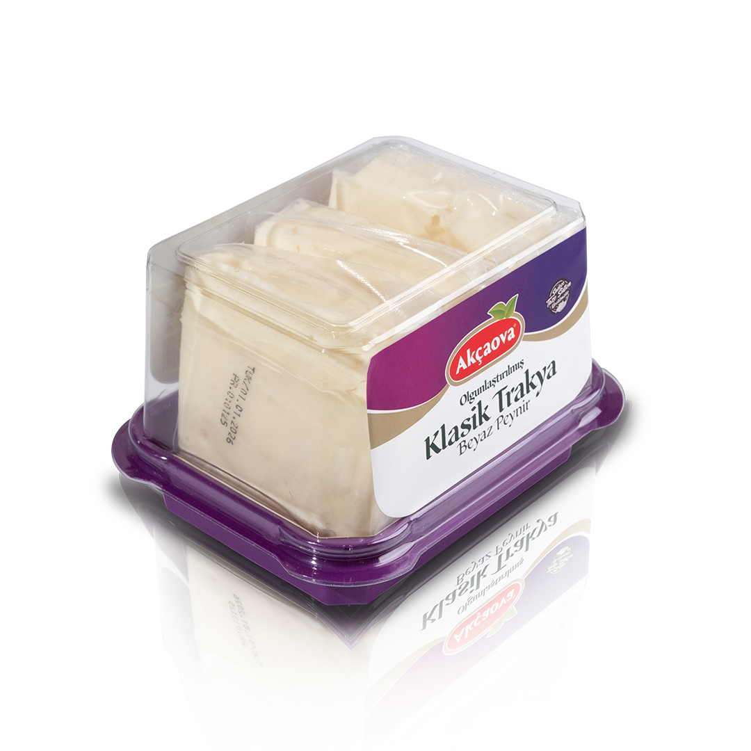 Trakya’nın geleneksel peynir lezzetini pratik ambalajda sunan Akçaova Klasik Trakya Peyniri 3 Dilim, tam yağlı sütten üretilir ve şirden mayasıyla olgunlaştırılır. Üç ayrı dilim halinde paketlenen bu özel peynir, kullanım kolaylığıyla hem lezzet hem pratiklik sunar.